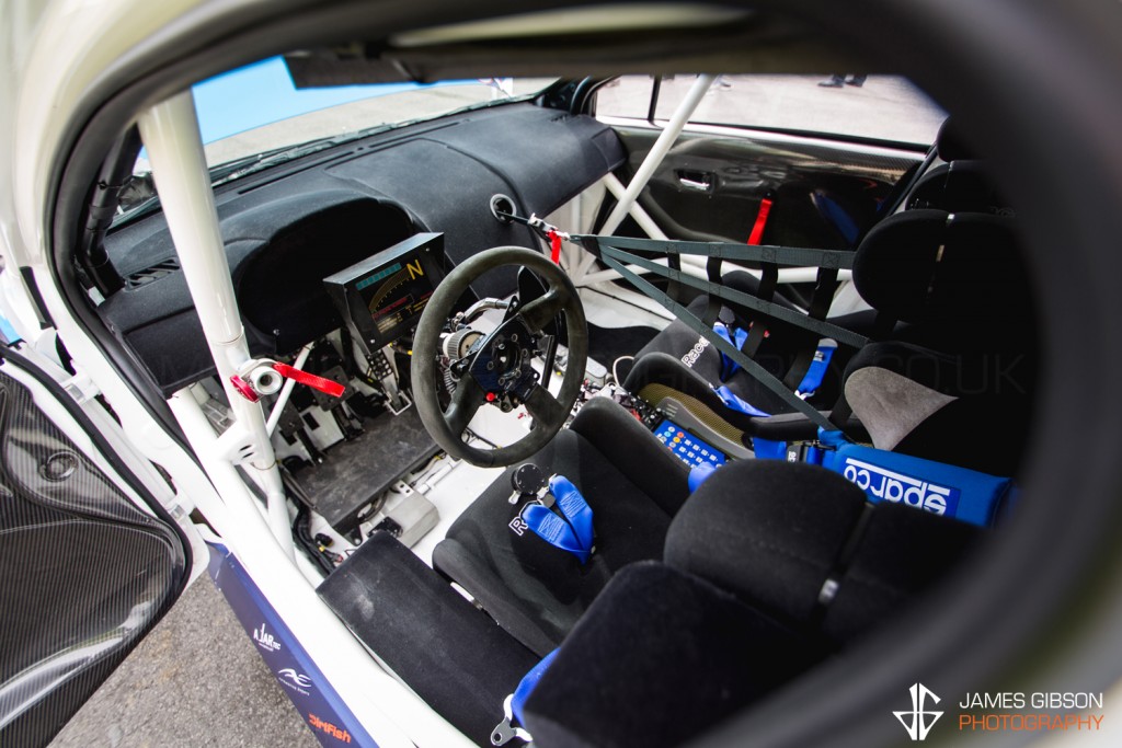 The car uses a sequential box, runs slick tires and is completely stripped on the inside. Tarmac rally dampers and brakes fill the arches and the boot-lid is dominated by a substantial wing, which just so happens to be active.
